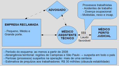 O esquema – Segundo a investigação, os crimes cometidos eram relacionados a processos trabalhistas em que os trabalhadores sofreram acidentes de trabalho ou alegavam ter adquirido doenças em decorrência de suas funções na empresa. Em muitos desses casos, os valores das ações eram altos, pois o trabalhador, muitas vezes, afirmava estar parcial ou totalmente incapacitado para trabalhar em razão da falta de equipamentos de segurança, de treinamento inadequado, de condições desfavoráveis de ergonomia no posto de trabalho etc. Ou alegava que sua situação foi agravada por esses fatores.