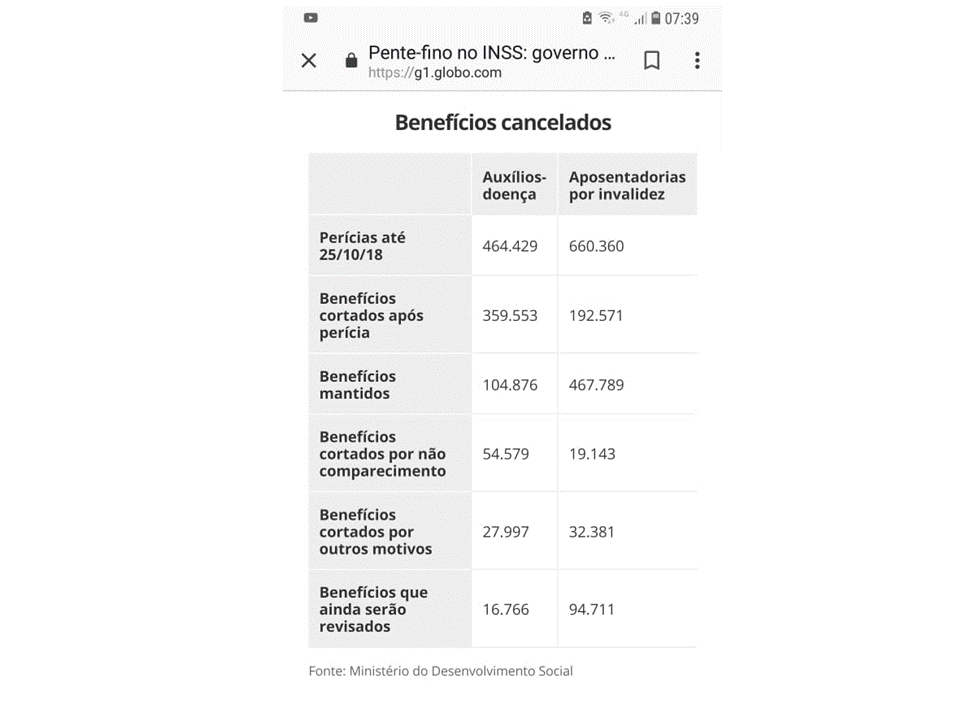 Desencadeado pelo INSS, a partir de 2017 e baseado na Lei 13.457, de 26/6/17, a qual inclui abomináveis gratificações pecuniárias aos peritos médicos que participassem do "furor antii-segurado e anti-trabalhador", foram realizadas mais de 1 milhão de perícias (de poucos minutos de duração) e cortados quase 400 mil benefícios de auxílio-doença e cerca de 150 mil aposentadorias por invalidez, além dos benefícios (leia-se 'direitos') dos que não puderam comparecer à convocação, por não terem sido localizados, ou por não poderem se deslocar, ou por outros motivos.