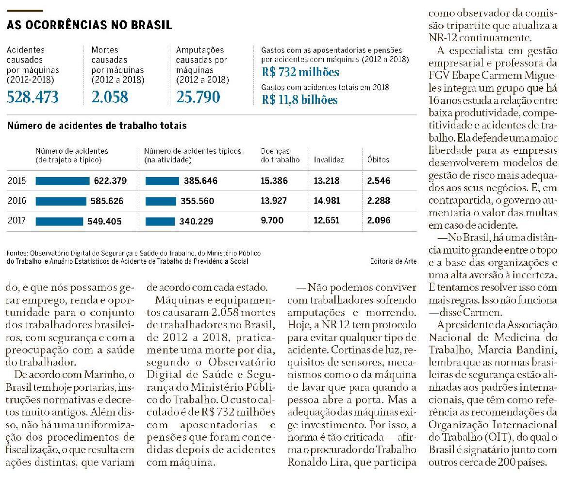 Máquinas e Equipamentos causaram 2058 morte no Brasil de 2012 a 2018. Fonte: Observatório Digital Efetue login ou registre-se para postar comentários