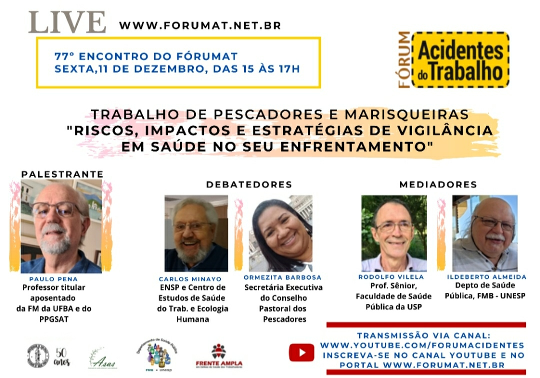 Vai ser sexta feira, 11 de dezembro, 15h. Novo Encontro ao vivo promovido pelo Fórum AT com apoios de parceiros. (transmissão via Canal Youtube do fórumAT em www.youtube.com/ForumAcidentes. O acesso é livre. Entre e inscreva-se no canal.