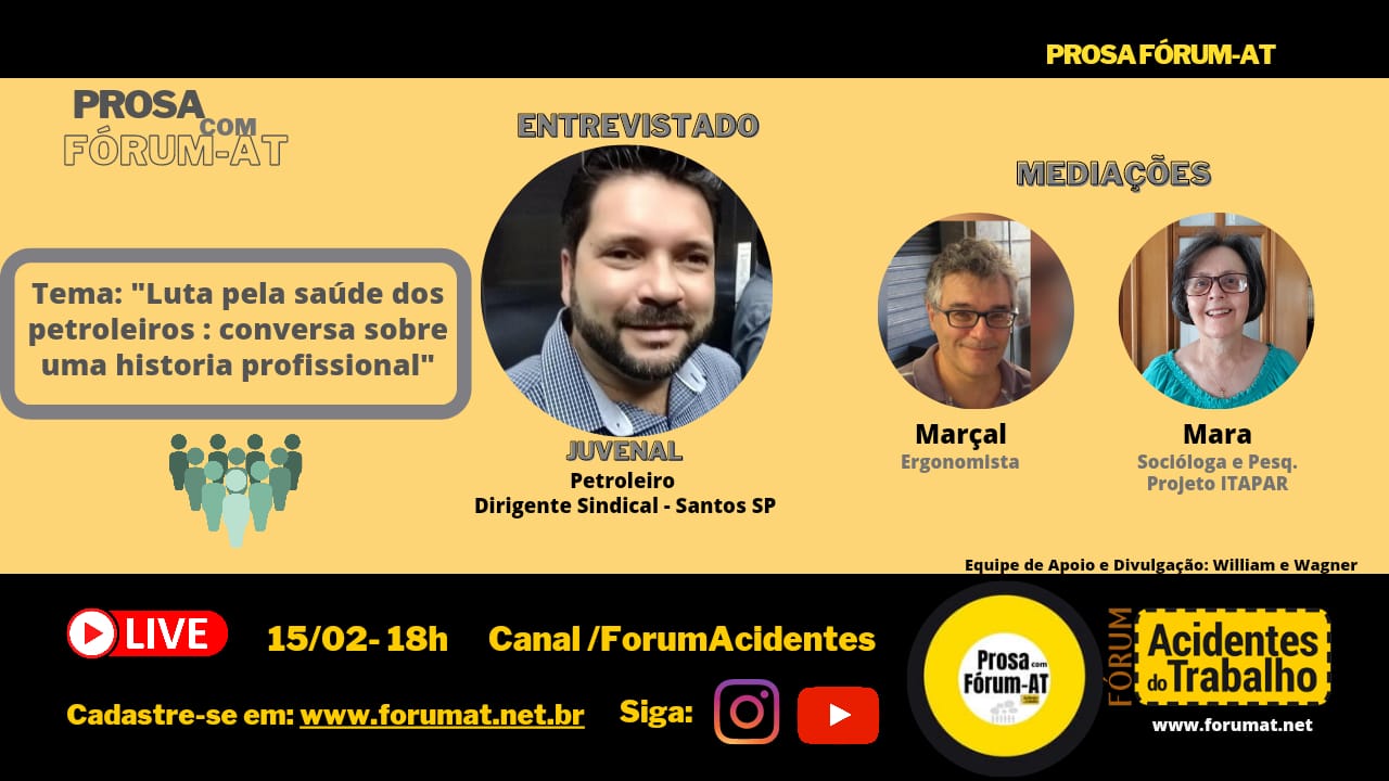 Prosa com Fórum AT: Marcelo Juvenal Vasco e a "Luta pela saúde dos petroleiros: conversa sobre uma história profissional"
