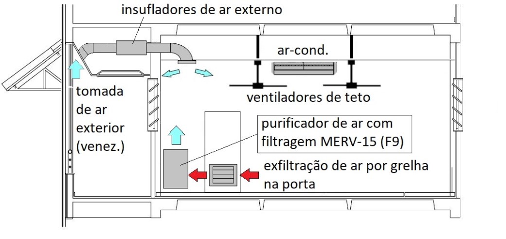 Modelo de ventilação utilizando MERV-15 e aparelhos ar-condicionado (Bruno Perazzo - Cogic/Fiocruz)