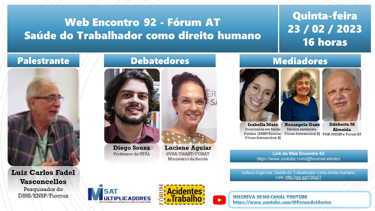 Nós do fórum AT recebemos cópia do texto "Saúde do Trabalhador como Direito Humano (subsídios para a argumentação da tese)" de Luiz Carlos Fadel Vasconcellos.