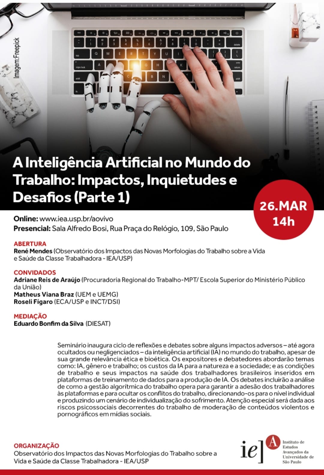 Este seminário inaugura um ciclo de reflexões e debates sobre alguns impactos adversos da inteligência artificial (IA) no mundo do trabalho.
